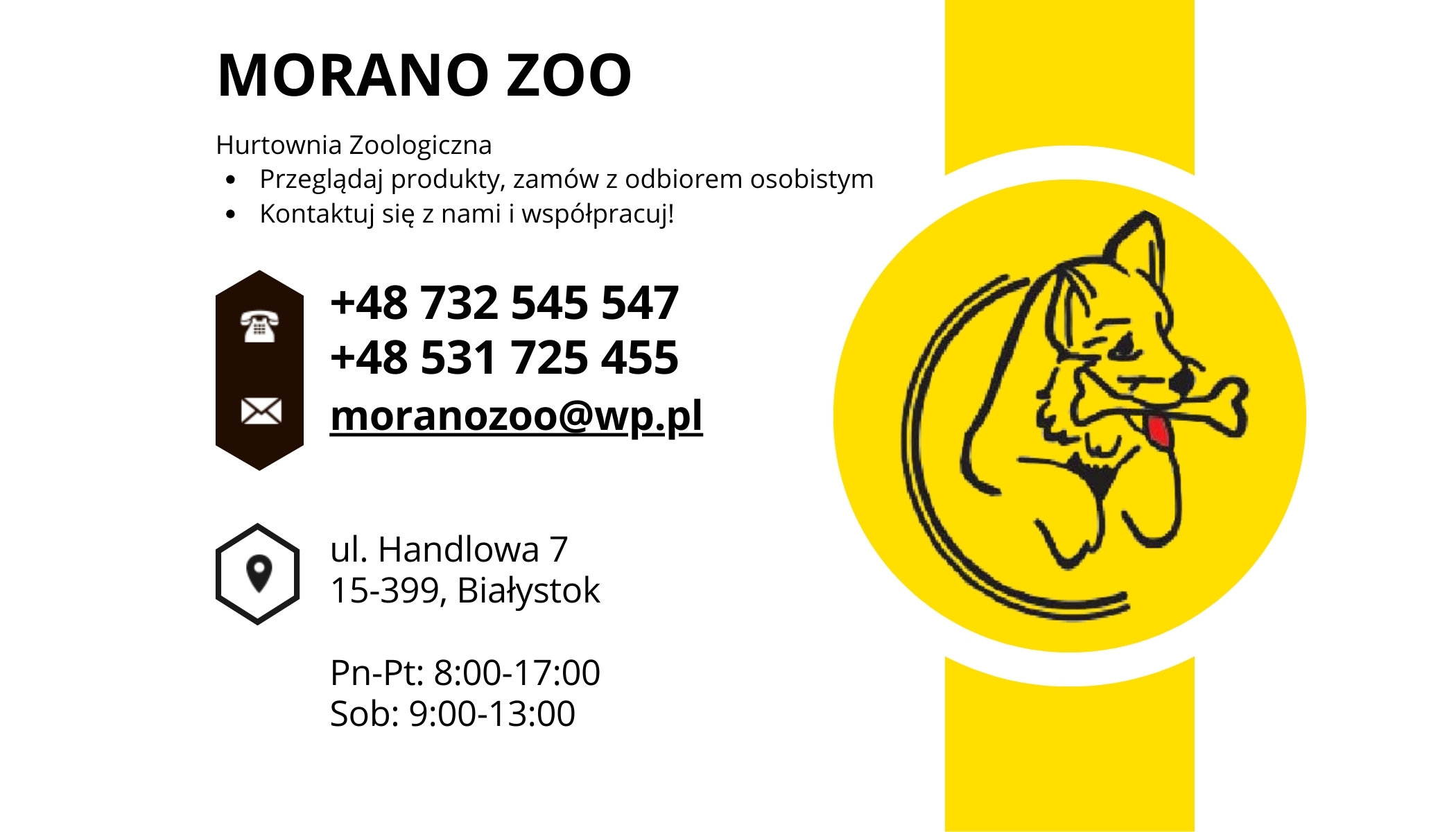 Zapraszamy do zapoznania się z naszą ofertą i do kontaktu z nami w celu omówienia szczegółów współpracy. Jesteśmy tutaj, aby wspierać Waszą działalność i zapewnić najlepsze produkty dla Waszych zwierzęcych podopiecznych.